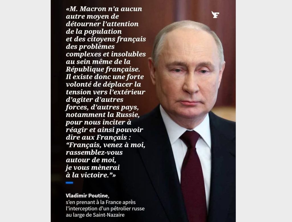 Alors aujourd’hui, comme dit le Figaro, vous savez le grand journal objectif de la bourgeoisie dont le propriétaire a fait fortune avec les marchés publics de l’État et que c’est pour ça qu’il dit toujours la vérité, eh bien le Figaro nous avertit : l’autre Popov qui mange les petits-enfants avec ses 20 cancers, il « s’en prend » à la France, dis donc.