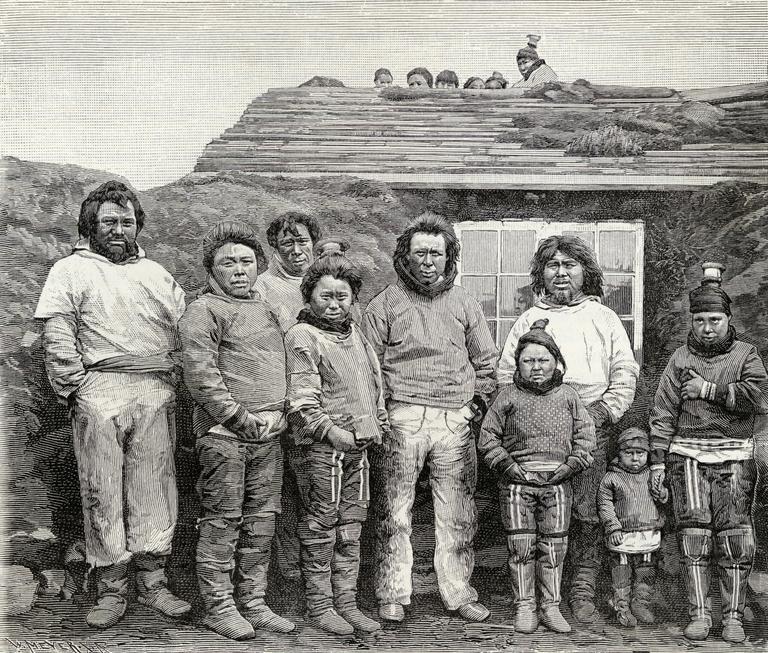 Une famille d’Esquimaux, lithographie de 1891-1892. Ken Welsh / Bridgeman Images