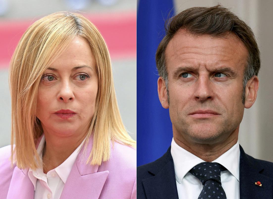 Giorgia Meloni et Emmanuel Macron. ALBERTO PIZZOLI, THOMAS SAMSON / AFP
