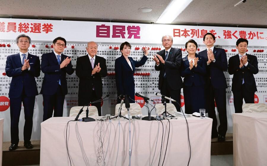 La première ministre du Japon, Sanae Takaichi, représentante du Parti libéral démocrate, le soir de l’annonce des résultats des élections législatives anticipées, le 8 février à Tokyo. Jiji Press/ABACA