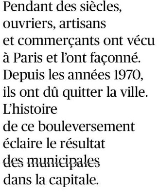 RÉCIT – Pendant des siècles, ouvriers, artisans et commerçants ont vécu à Paris et l’ont façonné. Depuis les années 1970, ils ont dû quitter la ville. L’histoire de ce bouleversement éclaire le résultat des municipales dans la capitale.