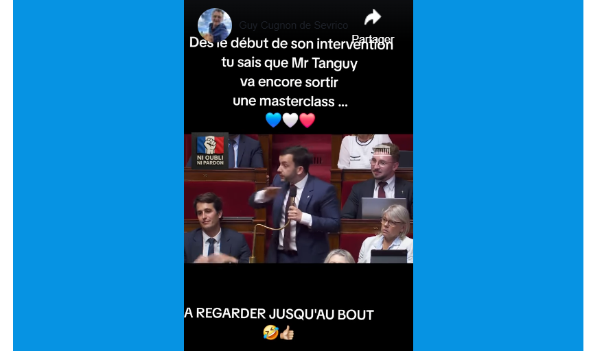 Vidéo courte. Tanguy toujours égal à lui-même. Drôle, très drôle même, mais fin connaisseur des dossiers, technique quand il le faut, toujours réaliste, comme on peut et doit l’être en politique. Sans autre commentaire. Source : Guy Cugnon de Sevricourt